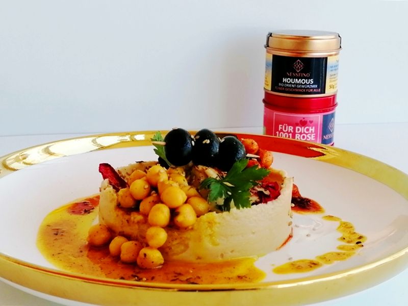 Der perfekte Houmous ist herrlich luftig und extrem cremig. Mit unserem Rezept für Houmous Creme, kannst Du ganz einfach veganen Kichererbsen-Dip selber herstellen. Du brauchst nicht viel mehr als Kichererbsen, Tahini (Sesammus), Salz, Olivenöl und NESSFINO Bio Houmous Orient Gewürzmix.